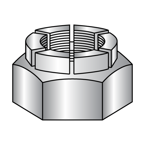 Flex type nuts have a round segmented collar with opposed slots cut into it above each corner of the nut. When the screw or bolt reaches the collar, the slotted portion expands which creates the prevailing torque locking action.